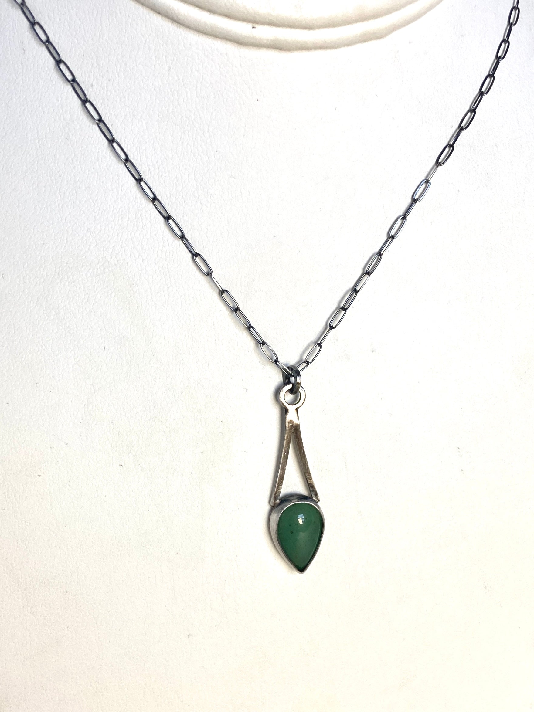 Aventurine set in blackened silver. 18 inch sterling silver chain.