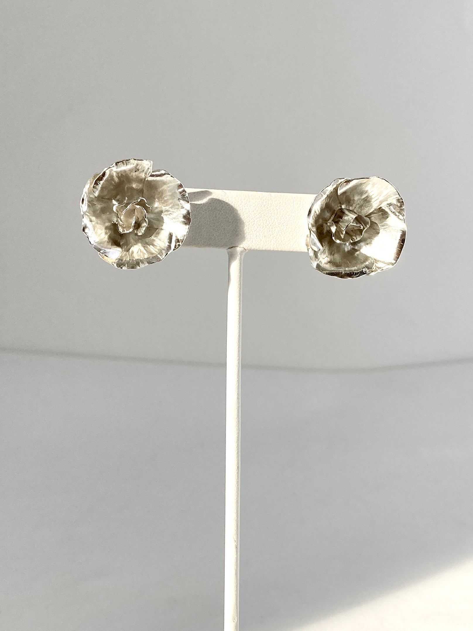 Sterling Silver hand forged flower post earrings made from low tarnish sterling