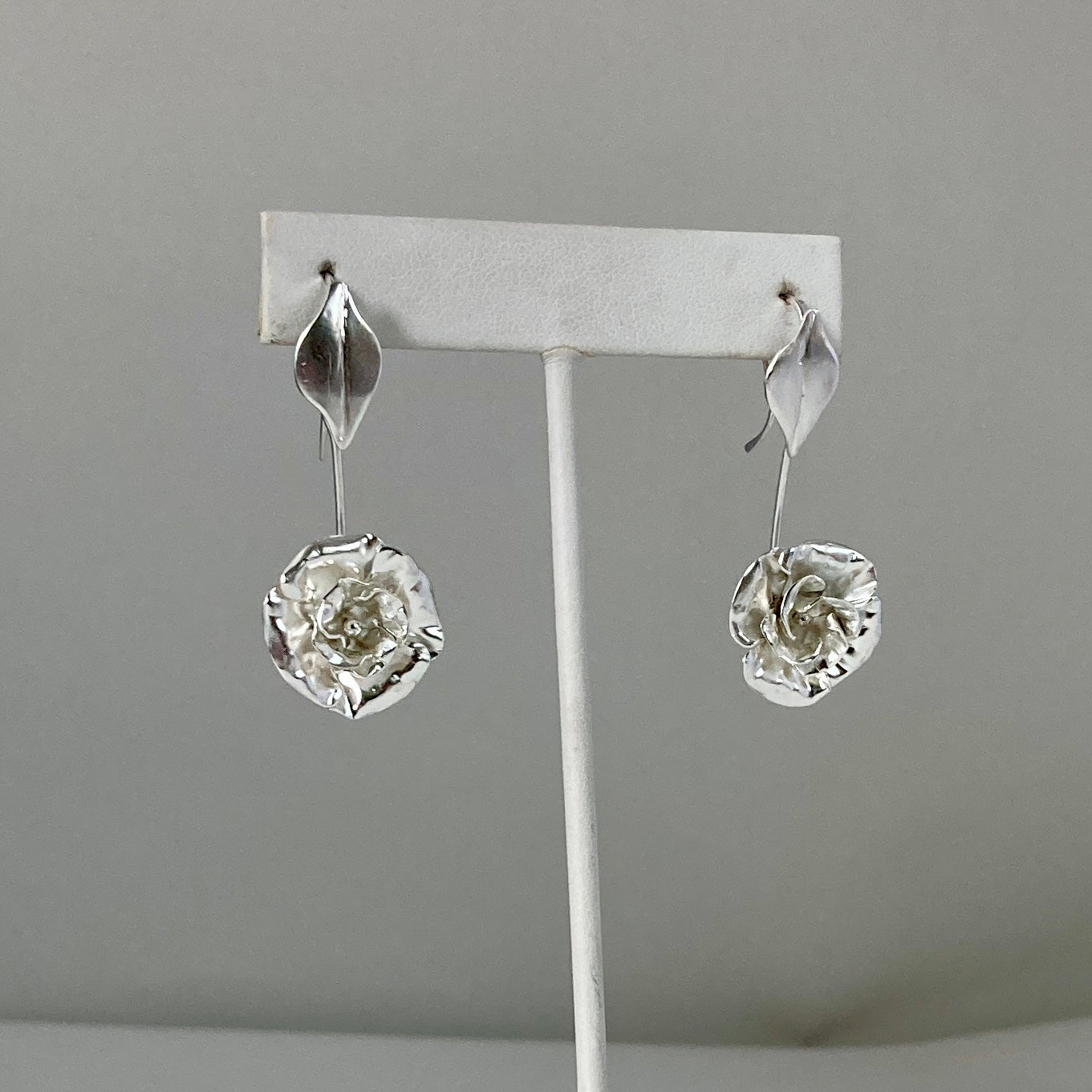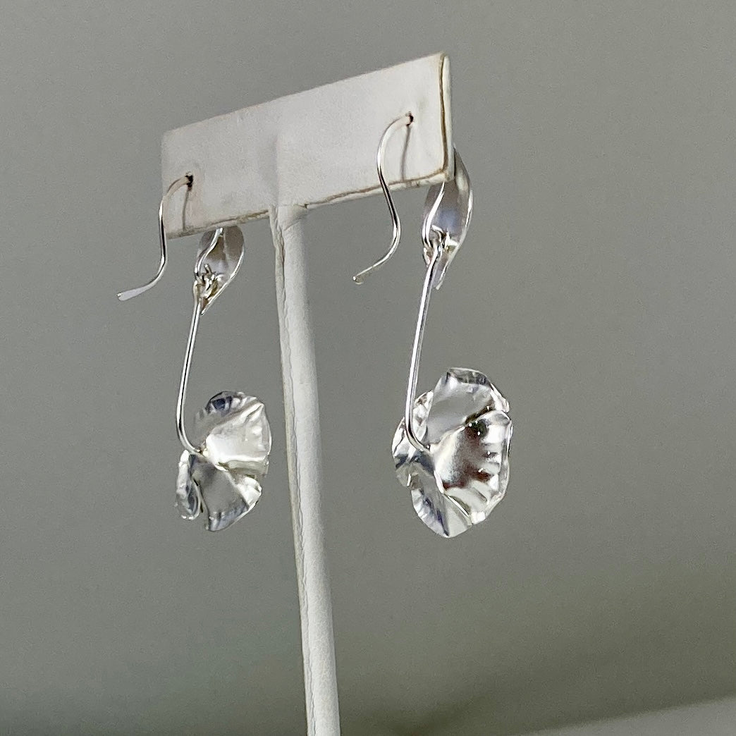 Sterling silver flower earrings. Finally! flowers that never wilt. These dangling flowers measure 2 inches from the top of the earwires to the bottom of the flowers. The flowers are 1 inch square.