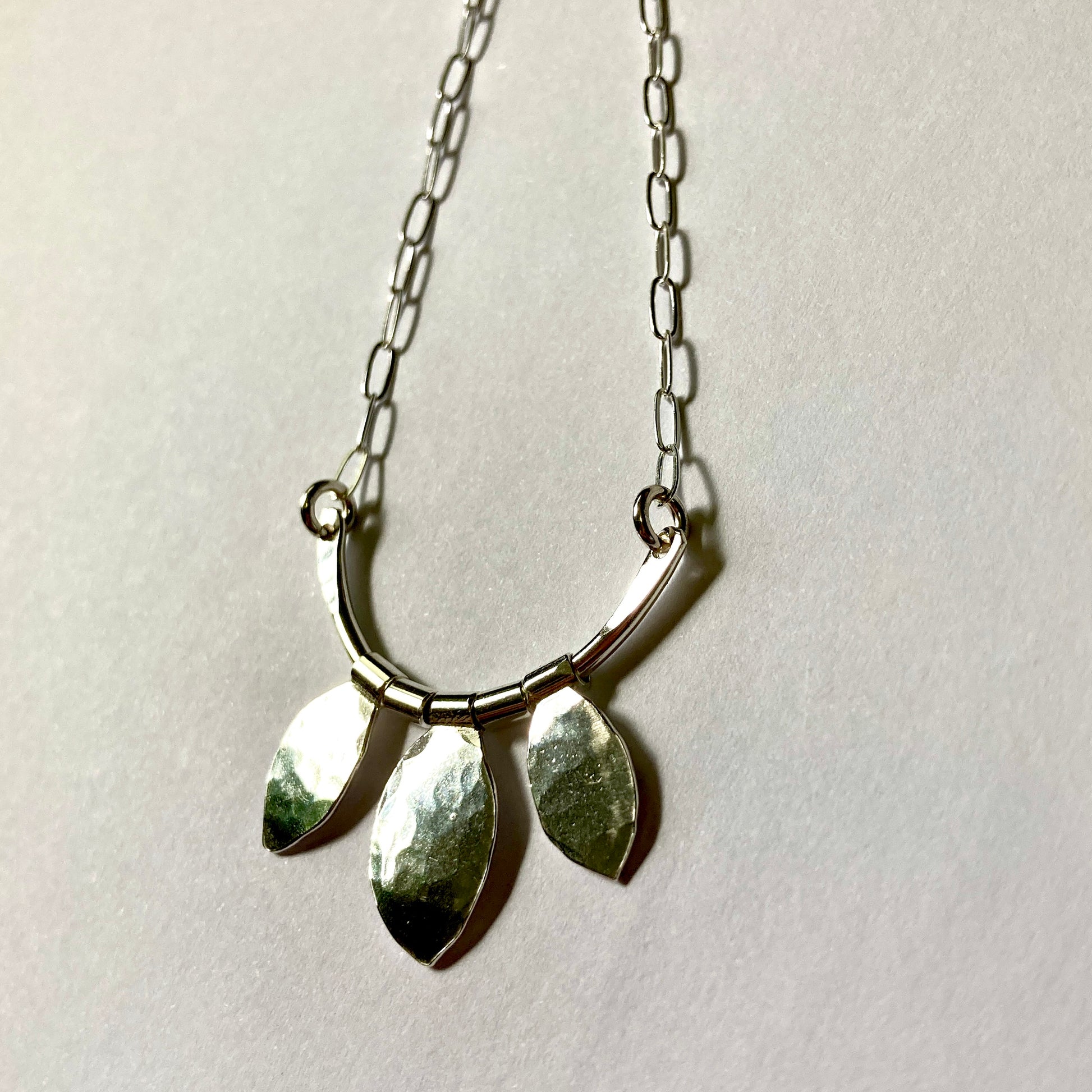 Sterling silver necklace with leaves that move. It hangs 18 inches long or princess length chain