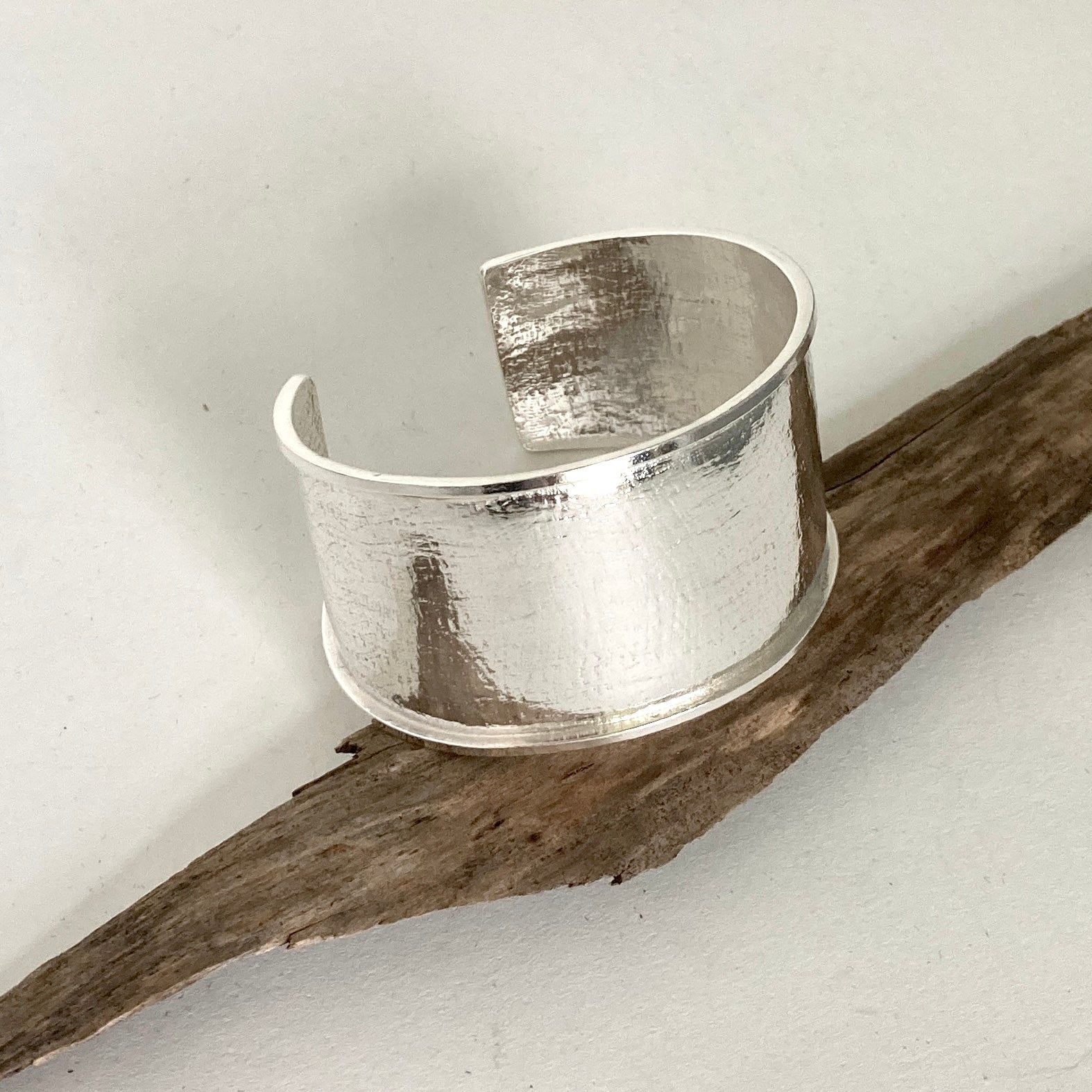 Sterling Silver Cuff. Lightweight and very comfortable to wear. As a kid I’d sometimes make cuff like this out of aluminum foil and pretend that I was Wonder Woman. Wear this cuff to deflect negativity and jerky people.
